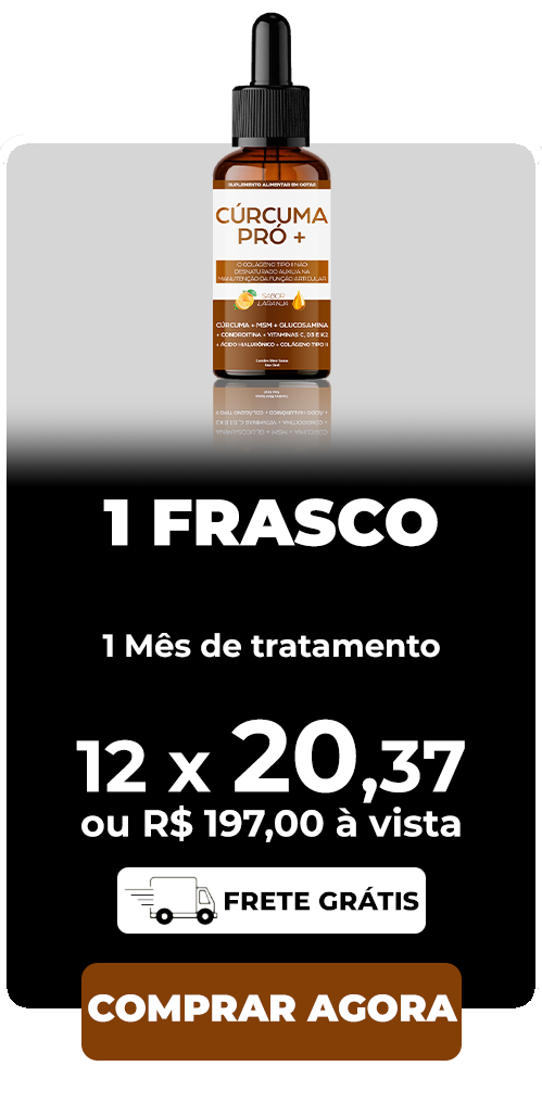 Chegou o fim dos tratamentos invasivos, dolorosos e com resultado temporário! O Cúrcuma Pró + funciona por meio de aplicação sublingual, que proporciona uma absorção rápida e eficaz por meio da glândula que temos sob a língua, nela, vasos que acessam diretamente a corrente sanguínea, absorvem rapidamente seu conteúdo e promovem resultados surpreendentes em pouquíssimo tempo. Você ira pingar 12 gotas a noite.
